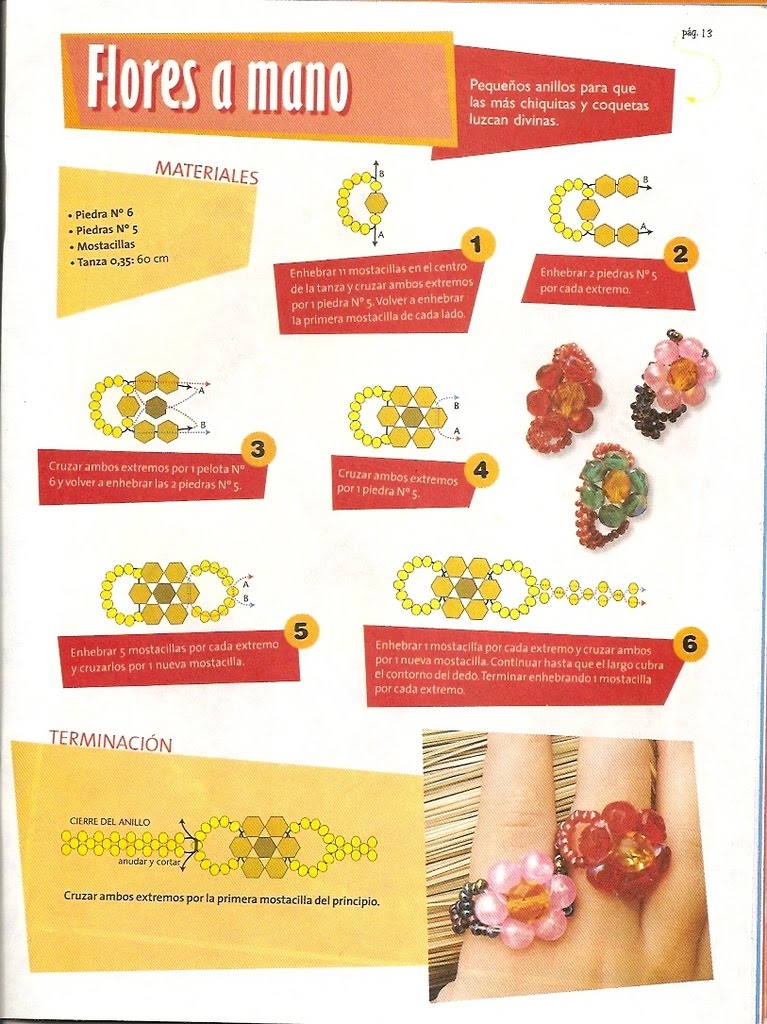 ResponderEliminarHola, gracias por tus comentarios, con relación al anillo azul te informo que está trabajado con perlas blancas # 3, y cuentas facetadas del 6, para hacerlo solo debes guiarte por el esquema, seguir los paso a paso del 1 al 5, has una prueba primero y te daras cuenta. Suerte¡¡¡¡¡